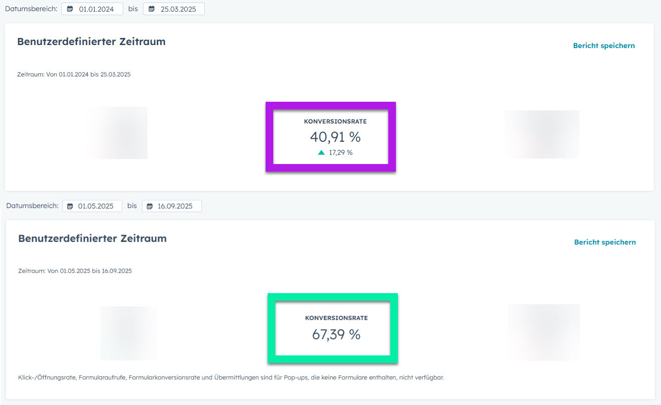 Echter Screenshot mit den Conversionrates aus HubSpot