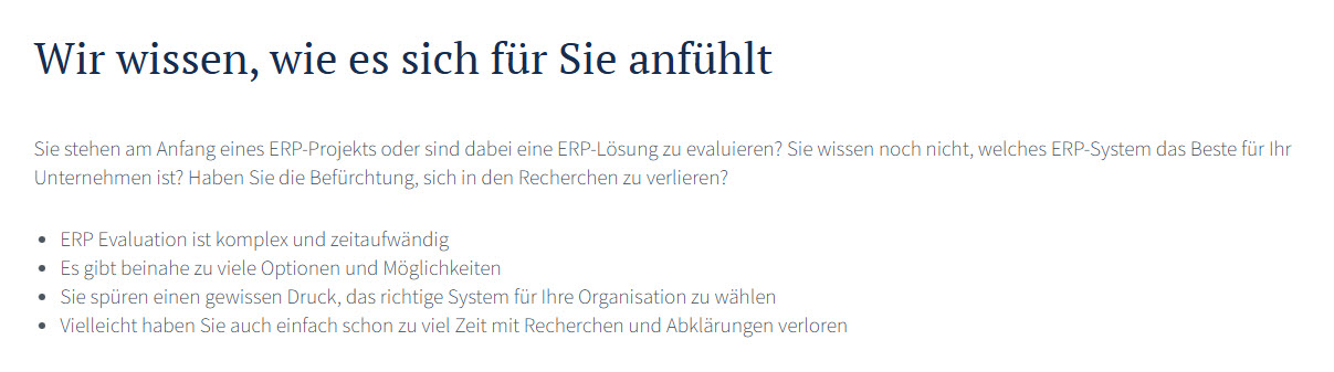 «Wir wissen genau, wie es sich anfühlt, wenn man am Anfang eines ERP-Projekts steht. Der Druck, die Unsicherheit, die Recherchezeit – wir kennen das!»